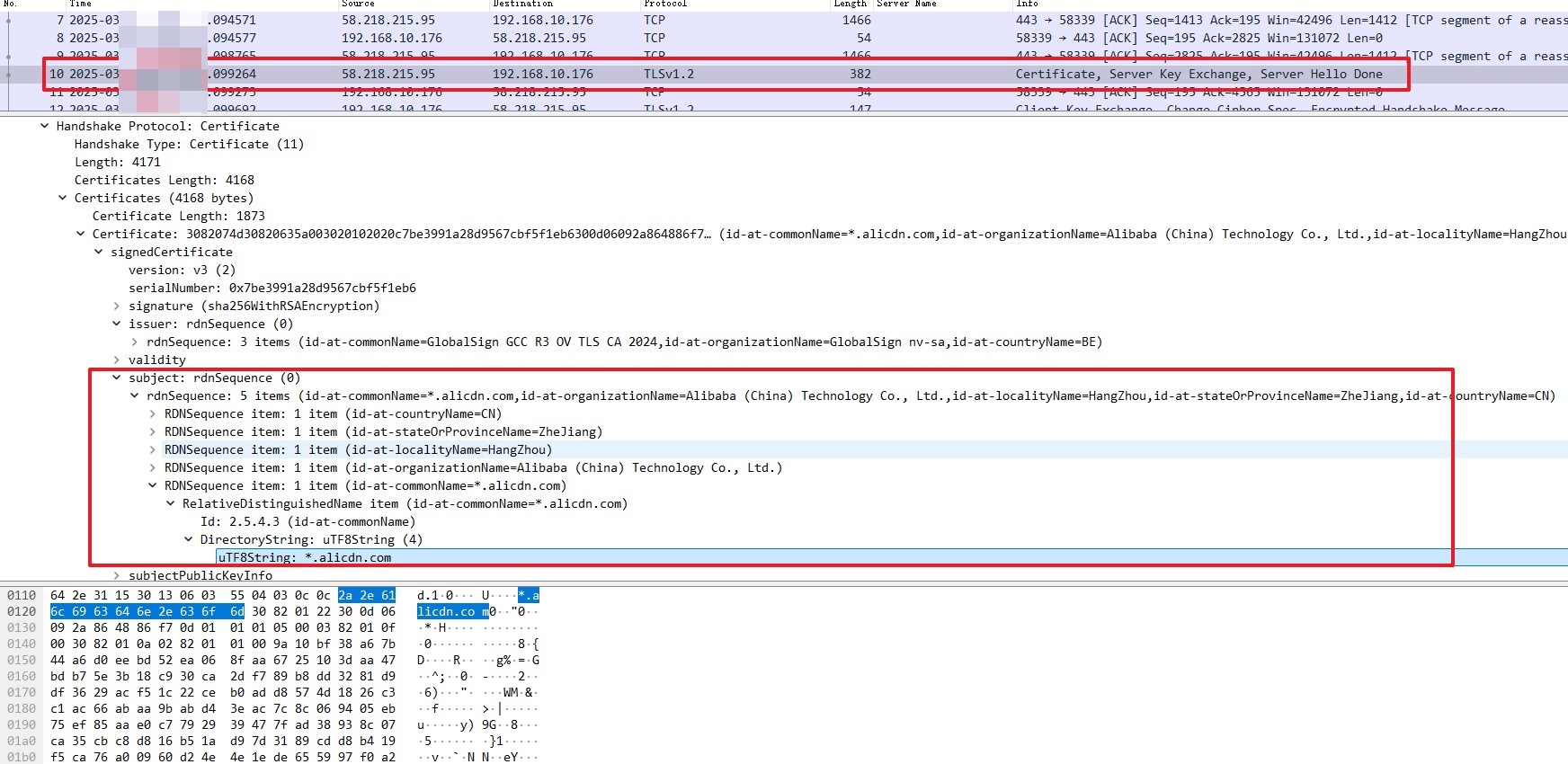 同时如果看回来的流量,通过server的回包,我们可以看到,其使用的证书式xx厂商的证书,其实就是内置某厂商的一个默认证书;